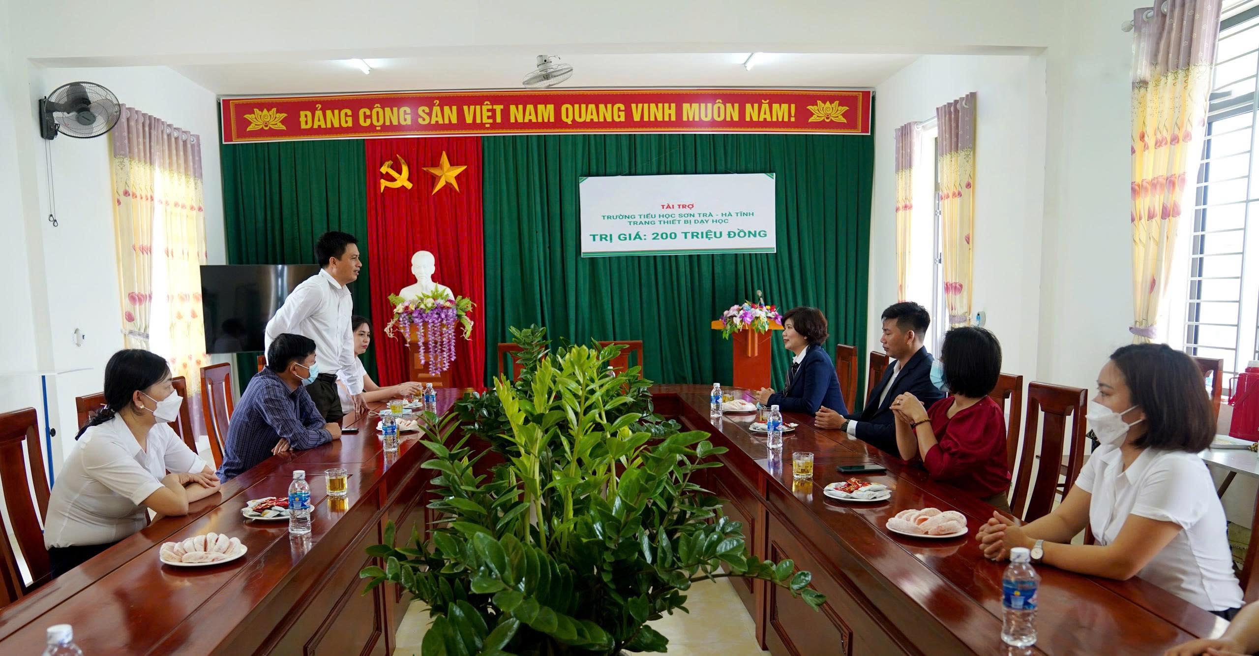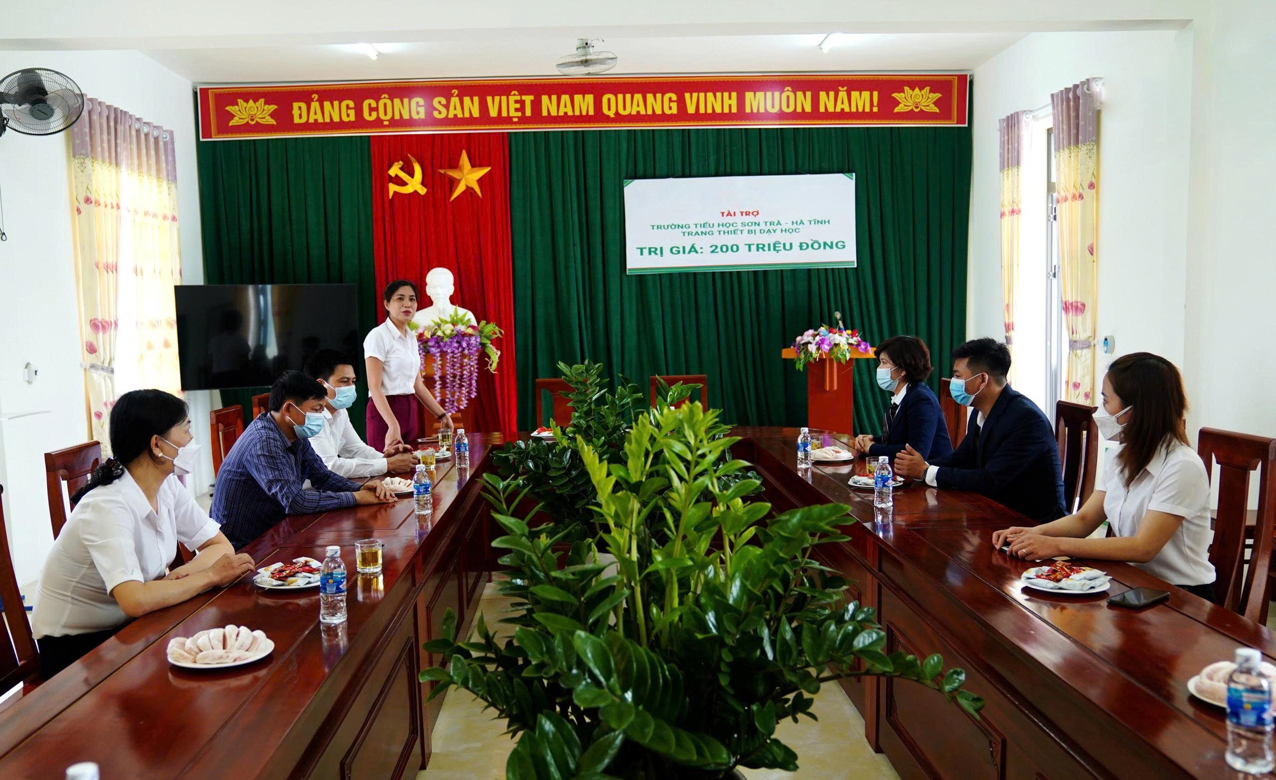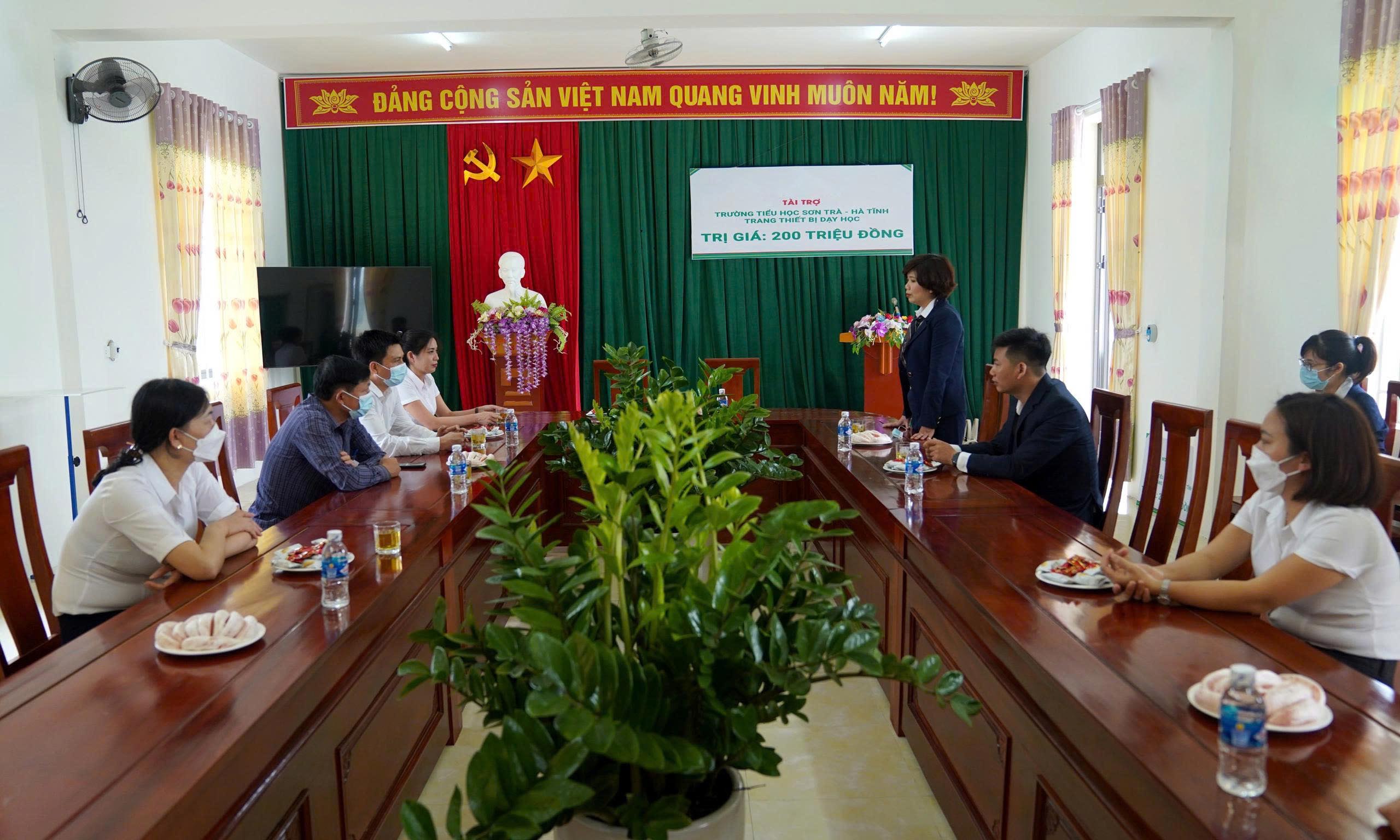Bà Phạm Thu Hương – Hiệu trưởng Trường Tiểu học Sơn Trà phát biểu tại buổi trao tặng